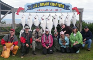 No “Bad Luck” Friday the 13th here (though the 12th was a weather cancel). Happy to catch these halibut were Michael Williams, Tom and Mary Jo Jung, Brenda Winder and her son, along with Cindy and prankster husband Ron.